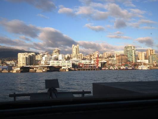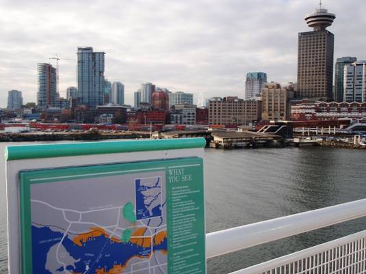 4つの帆がシンボルの、入り江に突き出た建物は、Canada Place(カナダ・プレイス)。デッキのような場所から見えるダウンタウンの沿岸沿いの建物や、入り江の対岸の景色がすばらしい。