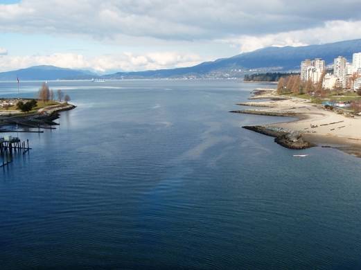ダウンタウンの南西側の海岸はEnglish Bay Beach(イングリッシュ・ベイ・ビーチ)と呼ばれ、非常に美しい砂浜の海岸が広がる。芝生や遊歩道も整備されており、ジョギングをする人や、犬の散歩、ローラースケートなどを楽しんでいる地元の人がたくさんいる。少し町のほうに行けば高層ビルの立ち並ぶ大都会だが、ここの雰囲気は穏やかで気持ちがいい。海の水も驚くほどきれいで、透き通っている。カモや海鳥が群れを成し、この海で羽根を休めている。都会の雰囲気に疲れたときには特にオススメの場所である。