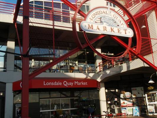 Sea Bus(シーバス)という船に乗ると、バンクーバーの北のNorth Vancouver(ノース・バンクーバー)の街に行くことができる。料金は$3.75で、市バスの1日券でも乗船可。シーバスを降りると、すぐ側には、1日目に行き損ねたLonsdale Quay Market(ロンズデール・キー・マーケット)がある。グランビル・アイランドは屋外にいろんな店が建っているところだったが、ロンズデール・キー・マーケットは大きな建物内にいろいろなお店が入っていた。