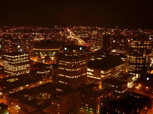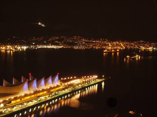 Centre(ハーバーセンター)という高層ビルにあるLookout(ルックアウト)の展望台に行った。バンクーバーで4番目に高いビルで、360度見渡すことができる。そして、夜ということで最高の夜景を見ることができた。ちなみに、こちらのページでは、ルックアウトからの昼と夕の眺めを体験できる。(Vancouver Lookout公式HP)