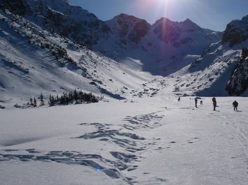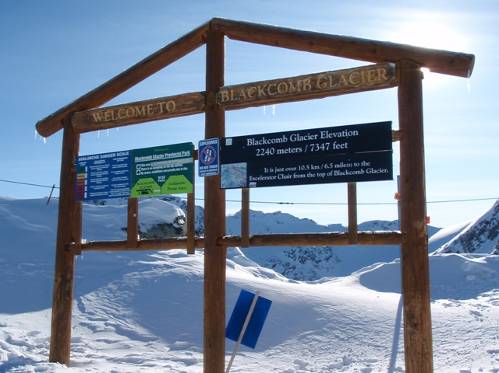 T-Barを降りると、右手にHorstman Glacier(ホルストマン・グレイシャー)という氷河ゲレンデが広がっているのだが、なぜか他の多くの人はそちらへは行かず、スキー板を外して正面の斜面を登っていく。不思議に思い、僕らも斜面をしばらく登っていくと、迫力満点の相当巨大な氷河ゲレンデが左手に現れた。これが州立公園にも指定されているBlackcomb