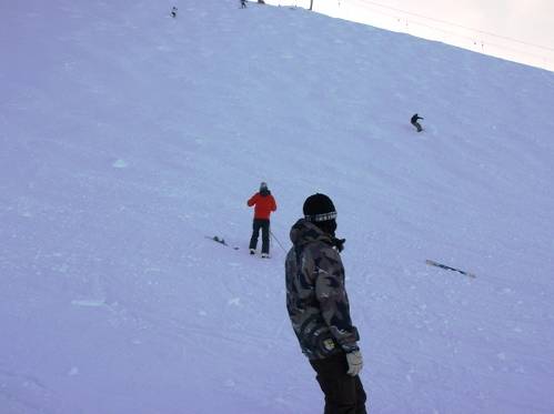 Heavenで滑走していた時にアクシデント発生!直登が岩に腰を打ちつけ負傷。ここで直登はゲレンデを降りることになってしまった。残った3人で滑走中、今度は堀部が急なコブ斜面で大転倒!なんとこの衝撃でビンディングの部品が90度ねじれて、がんばっても直らなくなってしまった。しかしリフト降り場の詰め所に板を持っていき、堀部の片言英語で事情説明すると、スタッフの人がハンマーでがんがんと叩いて直してくれた。