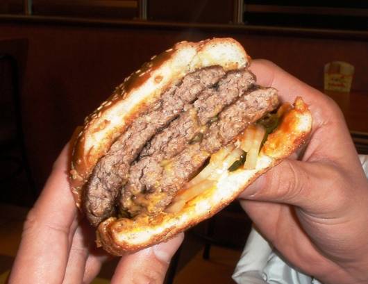 、”Uncle Burger”(おじさん)など家族関連のネーミング。Uncle Burgerはブ厚いサーロインハンバーグが挟んであり、かなりのボリューム。サイズもマックより大きいと見た。篠田の”Grandpa Burger”(じいちゃん)はブ厚いハンバーグの3枚重ね。カナダ的ボリュームに1個で大満足。
