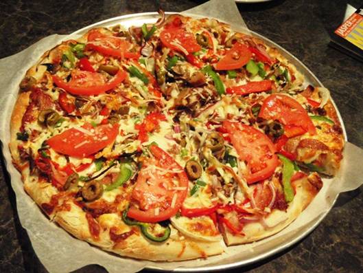 ジャスパーの町にたどり着いた時には、辺りはもう暗くなっていた。人気のないひっそりとしたジャスパー国立公園の森の中で、町の明かりが見えたときはホッとした。給油完了後、とりあえず今夜の宿となるJasper International Hostelを探すことに。しかし、調べてきた場所に行ってみても宿がない。町の人に聞いてみると、ジャスパーの町を出て、南の山麓にあるとのこと。早速地図を見直すと確かに載っている。しかしここから遠いので、先に夕食をとることに。近くのピザ屋に入り、12インチのピザをみんなで1枚注文。焼きたてで具たくさんのピザはとってもおいしかった。