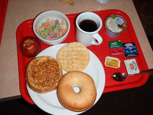 ここのモーテルは朝食が無料サービスとなっている。セルフサービスで用意されているのは、パン、シリアル、マフィン、ヨーグルト、リンゴ、ワッフル、フレンチトーストにコーヒー、ミルクなどの飲み物。ありがたくいろんな種類のものを食べることに。そして食べ過ぎたようだ。
