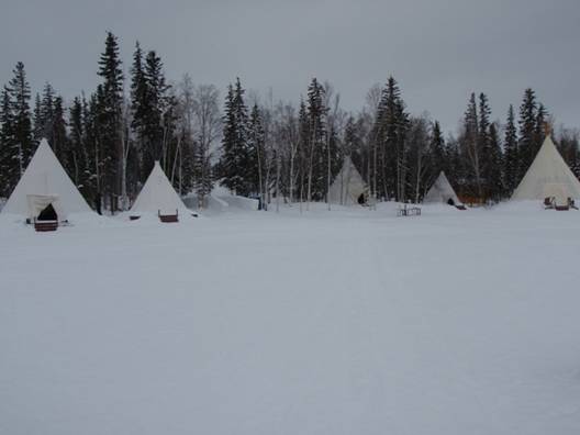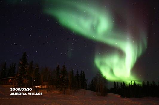 各自昼食をとった後、バスに乗って犬ぞり体験ツアーに出発。30人ほどの参加者は全員日本人で、ガイドも日本人である。全員飛行機で飛んできたはずで、車で来た人などいないであろう。30分ほど街を離れた森の中にオーロラビレッジは存在した。今晩のオーロラ観測も同じ場所である。たくさんの犬が飼われていて、盛んに吠えまくっている。そりを引くのは10匹であり、引っ張るのは自分だと吠えてアピールしているようだ。犬ぞり第1便が出発してしまうと、あれほど吠えていた犬たちは、一気に静まりかえる。そしてそりが戻ってくるとまた盛んに吠え始める。