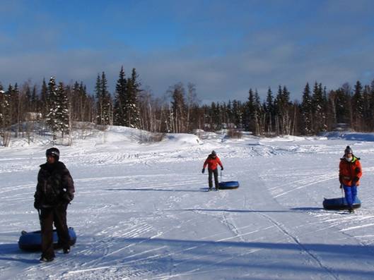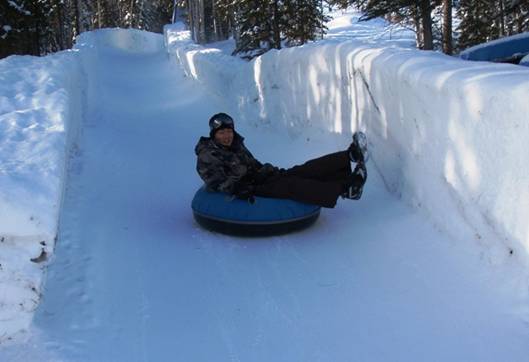 次に楽しんだのが、チューブスライダー。大きな雪の滑り台に登り、チューブに乗り込み、滑る。予想以上のスピードが出る。一人で滑るのに飽き足りず、4人で連結して一気に滑ることにチャレンジしてみた。ところが、前の人が滑り降りていく力が強すぎて、どうしても後ろが分裂してしまい、なかなか難しい。何度もチャレンジして、ようやく成功した時は気分が良かった。