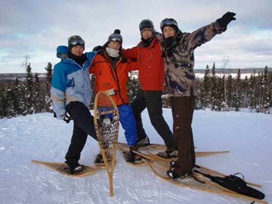 さらに、輪かんじきを履いて雪の上を歩くという体験もできた。初体験で、なかなか難しい。斜面では、ずっこけることも。