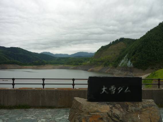 層雲峡を過ぎて大雪湖へ。あろうことか、雨がふってきた。