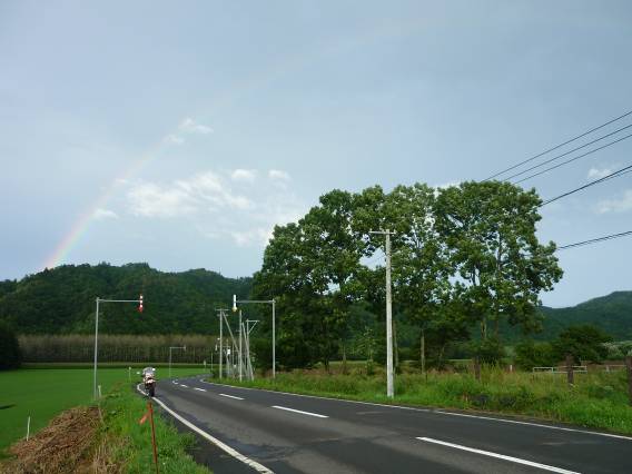 足寄でもしばらく雨宿りし、再出発。釧路へ向かう途中、晴れ間がのぞく。空を見上げると虹がかかっていた。希望が膨らむ。