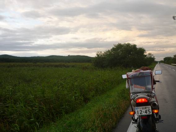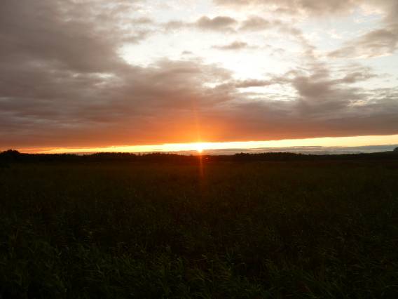 釧路湿原をバックに撮った夕焼け。明日こそ晴れますように。