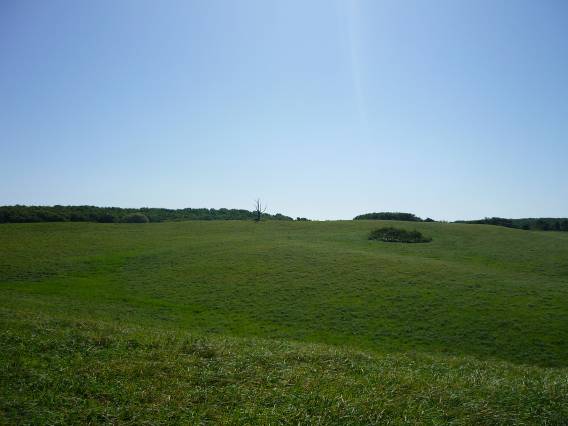 野付半島の原生花園。昔はトドマツという松が生い茂っていたそうだが、海面の上昇のためか、現在では立ち枯れてしまっている。
