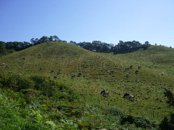 牧場がどこまでも続く。途中、牛が群れていた。牧場なので牛がいるのは当たり前だが、牛密度が低すぎる。これでは飼い主は大変なのではないかと思った。
