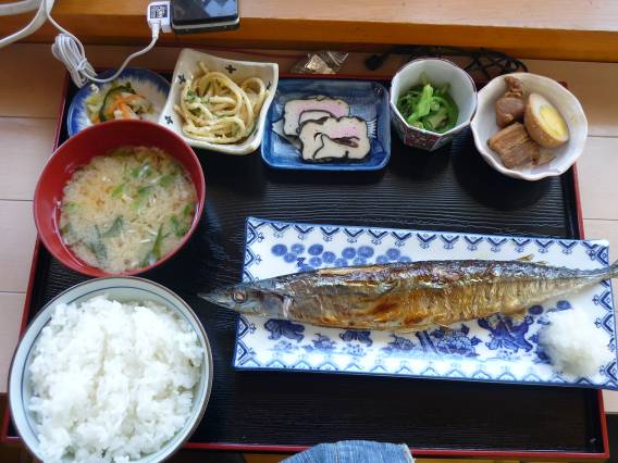 羅臼の道の駅で食べた秋刀魚焼き定食。旬には少し早いかもしれないが、とても美味。値段もこれだけのボリュームで800円程度だったと思う。