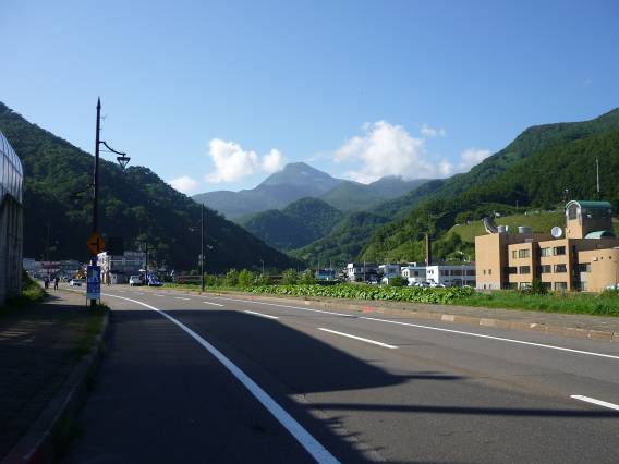 羅臼町から見た羅臼岳。迫力のある山だ。今から羅臼岳の基部である知床峠を越え、知床半島を横断する。