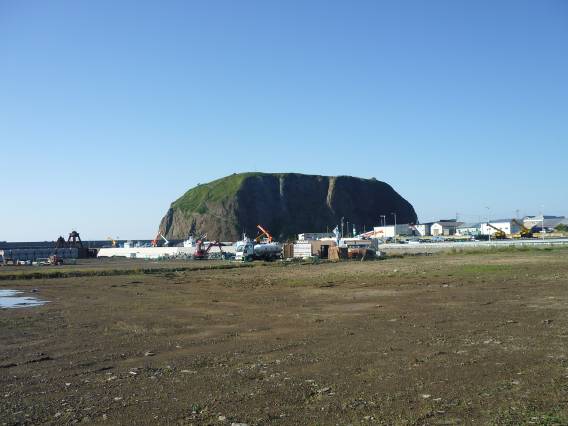 ウトロにあるオロンコ岩という巨岩。左の方についている道からてっぺんまで登ることができる。