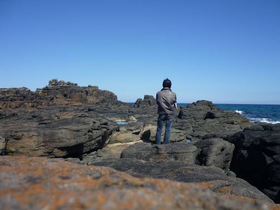 オロンコ岩のてっぺんまで登ってみた。最近の運動不足がたたってか、息が切れてしまった。この写真、何か生き物のように見えないだろうか?ゴジラ岩という名称がついている。