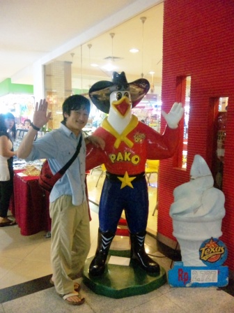 夕飯市街地中心部のデパート内にあるファストフード店、テキサスチキンで食べた。これだけのセットで値段は400円前後。他のレストランと比べるとあまり安くはない。ちゃんとイメージキャラクターまでいた。