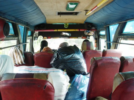 防空壕探検の後はバスターミナルからパダン行のバスに乗った。普通にチケット売り場で買えると思ったのに何人ものおじさんから声をかけられ、かなり値切っての乗車となった。